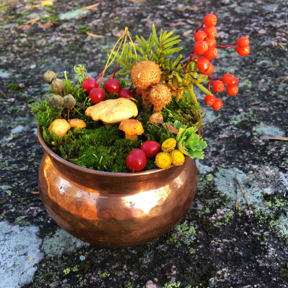 Tykkään kulkea lähimetsässä ja hautuumaalla poimimassa käpyjä, marjoja, sieniä jne. kransseihin ja muihin koristeisiin. Tässäpä muutama esimerkki.