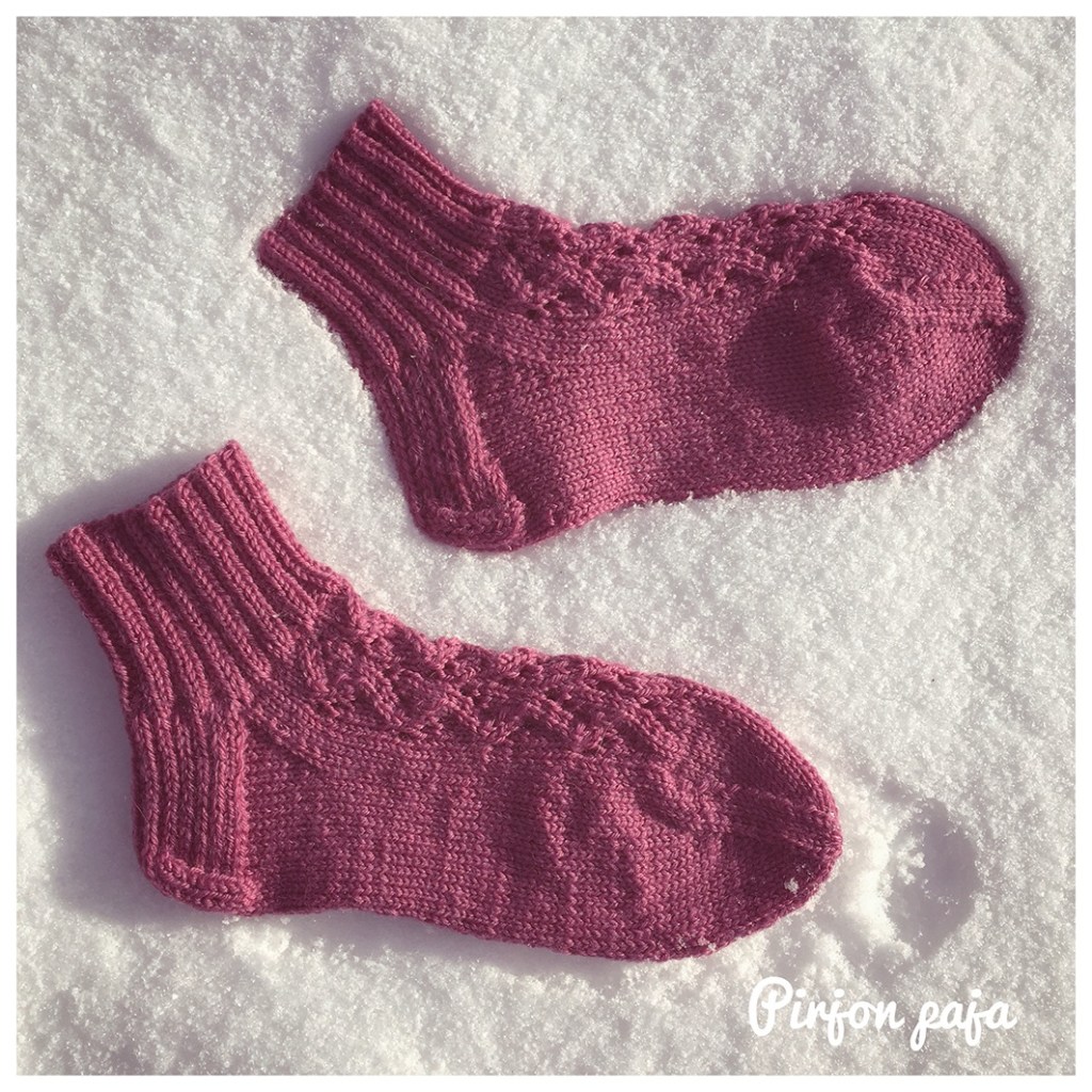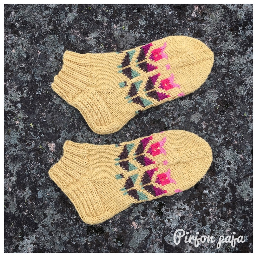 Mökille näitä voisi neuloa vaikka vierassukiksi, joku harvinaisempi mökkivieras ei kuitenkaan ole varautunut viileyteen 🙂.