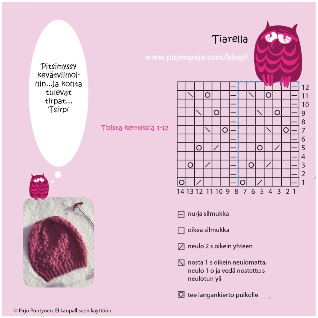 Seiskaveikkaa oljenkeltaista 65 g, v. 510 vaalean punaista 2 g, v. 550 pinkkiä 4 g, v. 563 fuksiaa 3 g, meleerattua ruskeaa 6 g ja v. 039 kortta ( homeen vihreä) 4 g. Koska vaakani on varsin epätarkka, varaa lankoja enemmän.