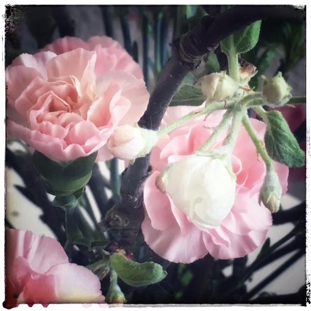 Tänä kesänä minulla oli tarkoitus kasvattaa paljon kukkakimppuihin sopivia kukkia. Tsinnian taimia olikin lupaavasti, mutta alkukesän kuumuus kyllä näännytti ne. Vain harvat selvisivät paahteesta. Sen sijaan odottelen nyt sini-ikiviuhkoja, kosmoskukkaa ja espanjanneitoja, ne tuntuvat selviytyvän.
