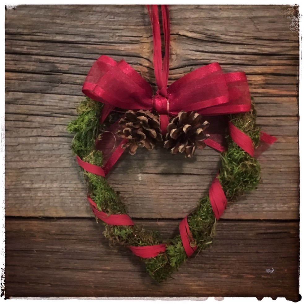 Tähän joulukoriin muotoilin sammalsydämen. Nuo Mooseksen Palavan Pensaan siemenkodat ovat todella ihastuttavia kuivakukkia.